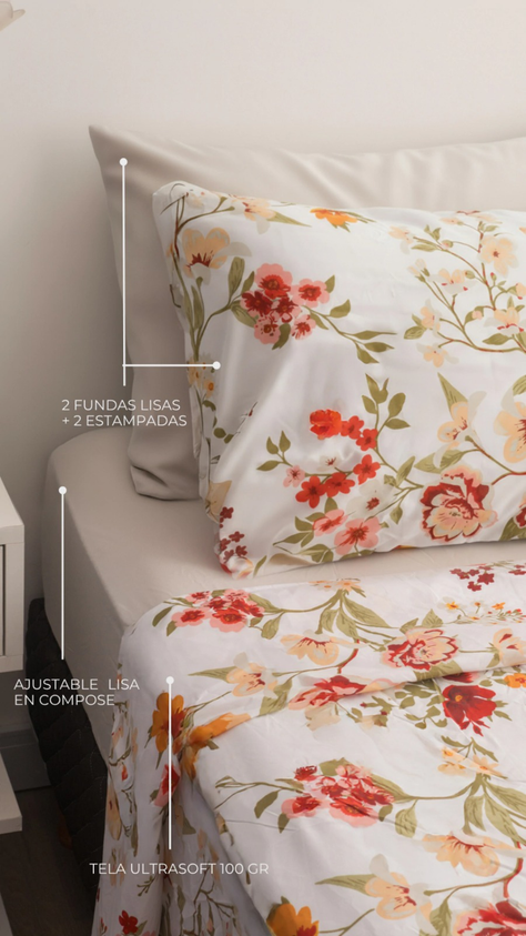 Juego de sábanas premium de 6 piezas. Microfibra cotton 100g. -Sábana superior: 2,20m x 2,40m -Sábana ajustable: 1,40m x 1,90m -4 Fundas de almohada: 50cm x 70cm